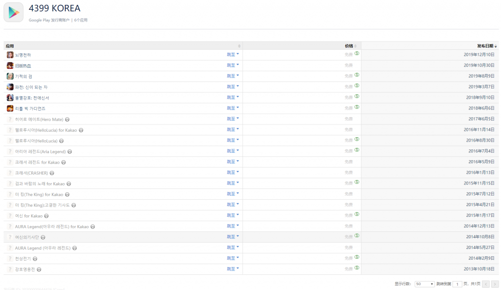 据AppAnnie的有关统计,4399最早在13年10月份就已经启用专门面向韩国Google Play市场的账号“4399 Korea”并发布了一款武侠题材卡牌游戏《강호영웅전》。从那时候开始,4399就一直在韩国市场不断地探索。