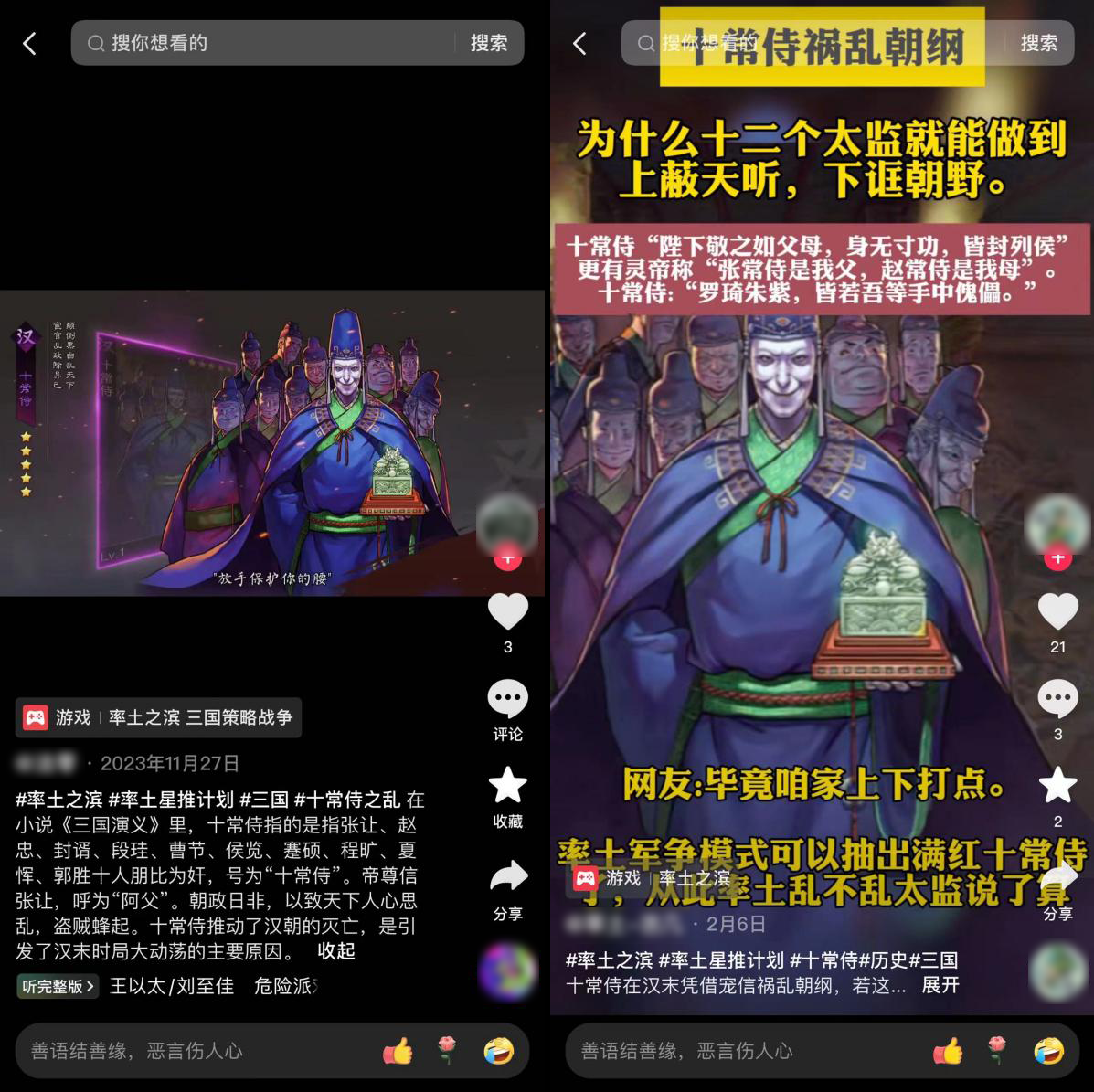 得益于其强大的技能效果,“十常侍”一度被誉为《率土》的平民神将,受到了众多玩家的追捧;也正是在这过程中,越来越多人开始关注并了解到这武将背后所潜藏的历史事件,让他们对于汉末的国家局势有了更深刻的认知。