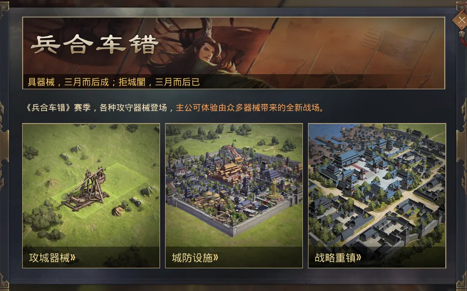“兵合车错”赛季,就是聚焦在了古代战争器械上,将官渡之战中大放异彩的“飞桥”、攻城战有重要作用的“霹雳车”,可以装载大量士兵,辅助阵地战的“吕公车”等等,史书记载的器械都在游戏世界中还原出来。一方面丰富玩家策略对抗体验,另一方面也让更多人了解到古代工匠们的突出智慧。