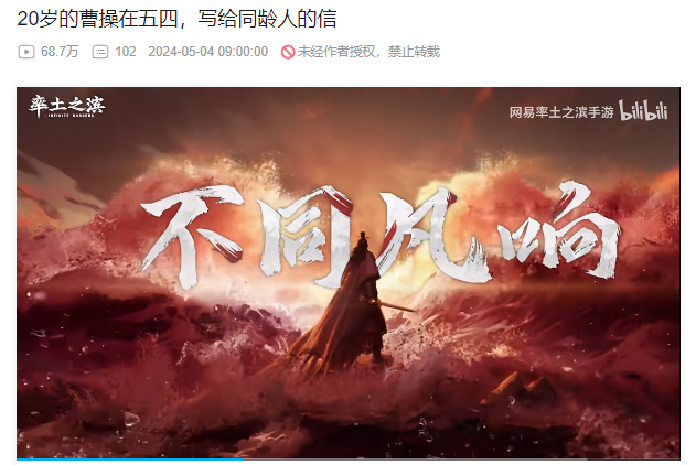在刚刚过去的五四青年节,《率土之滨》又一次打破了外界对它的认知:联合新华网共同发布品牌态度片《敢为》,让20岁的曹操对话今天的青年一代。