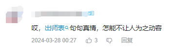 从评论我们也能看出,玩家对这些尝试是认可的。游戏推出的诸葛亮动画短片《出师表》下,如“出师一表真名世,千载谁堪伯仲间”、“句句真情,怎能不让人为之动容”的真情流露数不胜数。