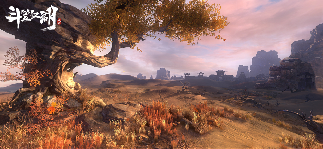 另一方面,研发团队对于《斗笠江湖》的游戏场景、台词对白等细节内容,也都做了不少对应时代背景的考究。例如游戏当中名为「龙门卫」的主城,灵感就来源于明朝时期的“卫所”军事制度,部分地图则借鉴了敦煌古城、江南水乡等现实场景。配合PBR材质效果,闯荡江湖同时,玩家也可以借此领略到祖国河山的旖旎风光。