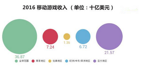 据《2016全球移动游戏产业白皮书》显示,2016年全球移动游戏市场达到369亿美元,占全球游戏市场的37%。预计2019年,全球移动游戏将创造525亿美元,占总游戏市场的44%。