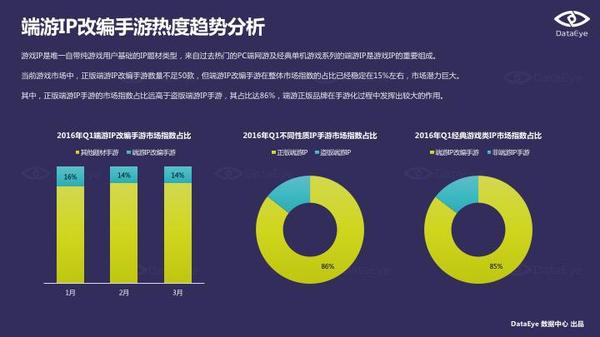 根据DataEye的调查显示,在2015年多款端游IP手游获得成功后,越来越多的端游厂商开始重视手游市场的价值,将旗下端游品牌延伸到移动领域成为部分端游厂商新的发展重心。通过直接的玩法复刻移植或题材、角色和世界观的引用改编等方式制作同名手游,以吸引端游老玩家关注与回归,并通过改编为多元化的细分玩法类型和持续不断的新产品迭代开发来迎合不同类型玩家的游戏需求。可以说,端游IP全面手游化已成为行业的发展趋势。