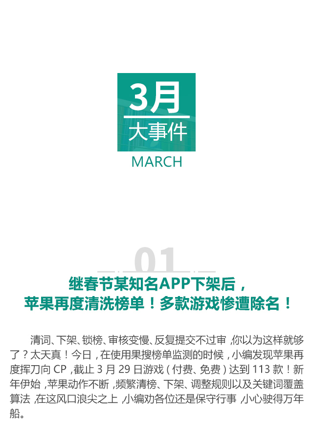 我们再来回顾一下3月份AppStore发生了哪些重大事件。