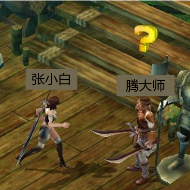 出生的地方是新手村。村口见一个造型酷炫的NPC,名字叫腾大师。