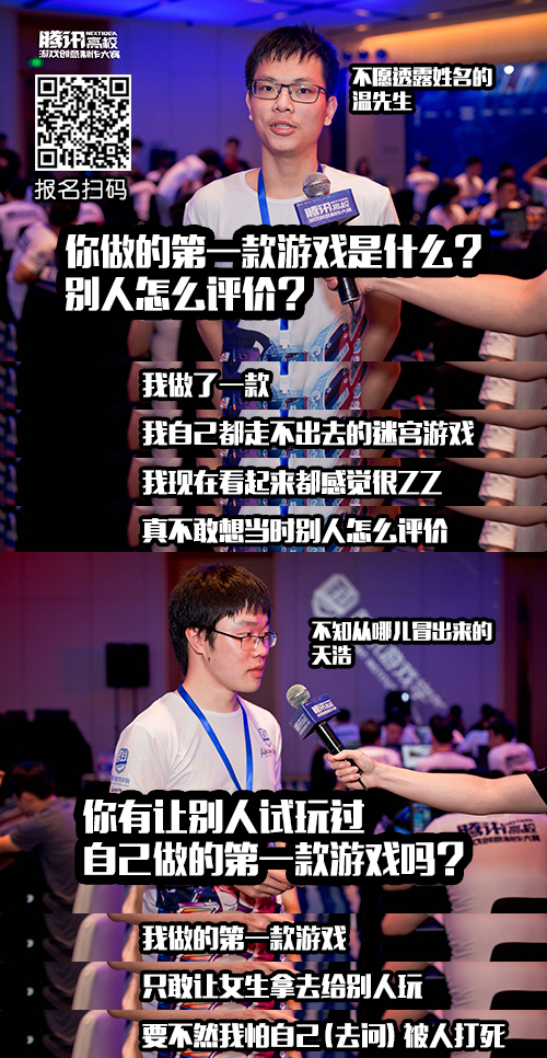 不挖不知道,一挖吓一跳,再优秀的游戏制作人都有黑历史。温同学就坦言,自己做的第一款游戏是迷宫游戏,但结果则是让自己迷失了。队友天浩君则笑称“只敢让女生拿去给别人玩”。有人表示不服,想挑战一下的吗?