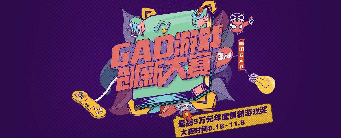 即日起至11月8日,第三届“腾讯GAD游戏创新大赛”面向海内外开发团队征集最具创意的游戏项目参赛,最高50000元人民币年度创意游戏大奖等你来,优质游戏项目还可获得腾讯GAD游戏扶持礼包!