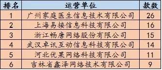 7月获得手游版号的运营单位合计391家,比6月的421家锐减30家。过审手游款数TOP6榜单上,广州家庭医生信息技术有限公司是全新面孔,首次拿下榜首位。笔者分析数据发现,该运营单位获得版号的手游都是七大类产品,且出版单位为北京中科奥。