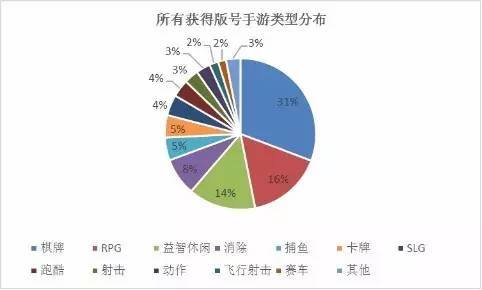 综合分析2013年至今获得版号的手游,类型分布方面,棋牌类产品占比遥遥领先,高达31%,实际上从2016年7月开始,每月都是棋牌类游戏过审数量最多。排在第2位的是RPG游戏,占比16%,原因在于RPG产品在各品类中的营收能力首屈一指,今年以来,RPG产品扎堆申办版号,近几个月,RPG手游过审数量仅次于棋牌,目前,市面上几乎所有S级RPG产品都已获得版号。益智休闲品类排在第3,该品类开发成本低,开发周期短,是中小CP的绝佳选择,而目前国内手游CP数量超过3万家,每月都会产出大量益智休闲游戏。其余品类占比都在10%以下,从具体类型上看,符合我们对市场现状的认知。