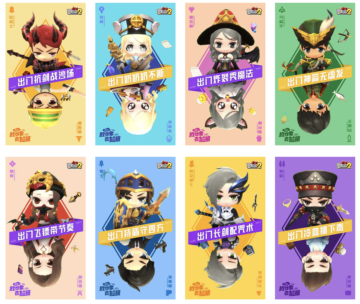 此外,《冒险岛2》今日还发布了一套“职业系列”的双面海报,将岛民能在冒险世界中“想玩什么就玩什么”的理念诠释的淋漓尽致:游戏中岛民不仅仅是“冒险家”,还可以选择任何自己想做的职业,如造型师、建筑师、演奏家等等。