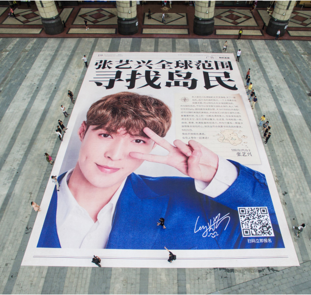 今日,继热门话题“张艺兴买了个岛”后,在上海环球港惊现一幅超大型报纸,长达30米,宽21米,总占地面积超过600平方米。而报纸上的张艺兴形象以及其“全球范围招募岛民”的消息,也同样让人好奇的心蠢蠢欲动。