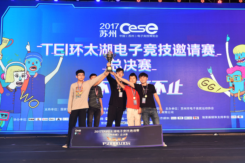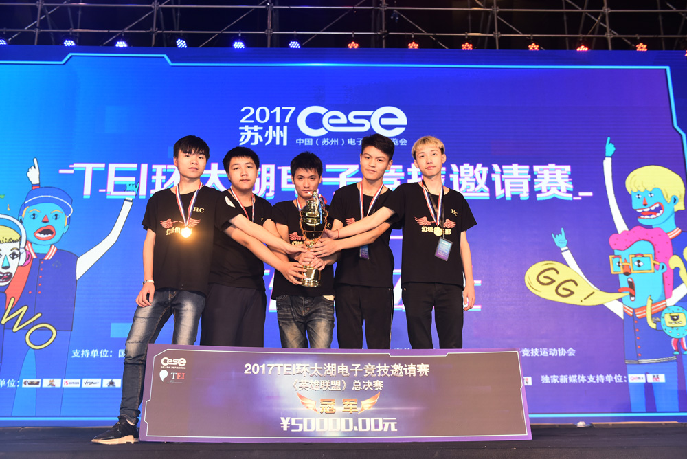 作为CESE电子竞技博览会的重头戏,由国家体育总局体育信息中心作为支持单位,江苏省体育总会、苏州市体育总会作为指导单位,苏州市电子竞技运动协会主办的2017TEI环太湖电子竞技邀请赛汇集环太湖地区共16支精英队伍,于展会3天内进行巅峰对决。经过团队内密切配合,团队间激烈角逐,最终《英雄联盟》项目总冠军由HC战队夺得,《王者荣耀》项目总冠军由EKG战队夺得,除了赢得赛事组委提供的50000元奖金外,他们还将获得专属于他们的荣耀冠军奖杯。