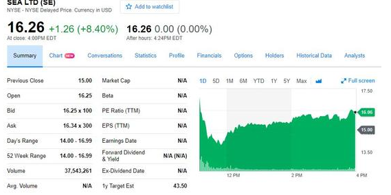 东南亚游戏与电子商务公司Sea(原名为“Garena”)于美股上市,代码“SE”,首日涨8.4%,市值达51.7亿美元,约合人民币342亿元。据招股书显示,腾讯目前持有Sea的39.8%股权,为Sea最大股东。