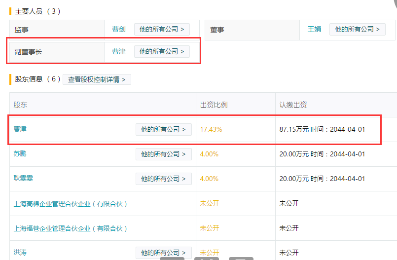 秉持着谨慎的原则,继续查询曹津名下公司基本可以认证这一事实