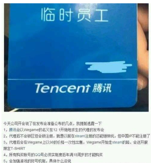 腾讯官方表示,关于“《绝地求生》国服在Wegame上出售,售价98元”的传闻为假消息,官方将在近期陆续公布游戏运营详情和售价等信息。11月28日上午,有媒体称获得“知情人士”爆料,腾讯将以Wegame的名义在21月1日举办《绝地求生》代理发布会,本次代理不锁区,国服版《绝地求生》将以98元的价格在Wegame上一次性出售,原有饰品可保留,继续在Steam上使用和交易。腾讯官方表示,此传闻为假消息,腾讯将在之后陆续公布关于代理国服《绝地求生》的详细信息。在此之前,腾讯曾在《PUBG》国服代理的公告中表示,游戏的正式中文译名还未公布和确定,产品的运营和本地化工作将由一个独立部门直接负责,与传闻中“以Wegame名义”的说法不符。