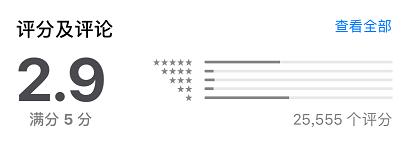 大概连腾讯自己也没想到,这款首发的纯正“吃鸡”手游口碑并不理想,甚至可以说是烂透了。《光荣使命》在 App Store 上25555个评分里只获得了2.9的平均分(满分5分),对比《终结者2》的4.5分和《荒野行动》的4.3分,可以说是差距巨大,甚至连《小米枪战》的3.8分也在口碑上明显高于本作。
