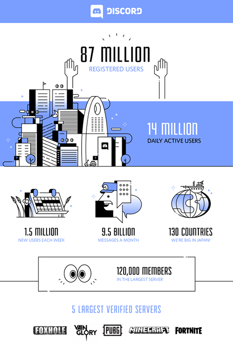 以下是Discord官方制作发布的Discord用户数据信息图。