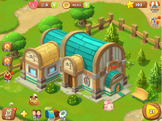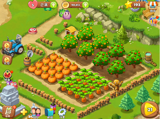 玩家通过消除关卡,获得道具和金币,收集蔬菜宠物,建设属于自己独特的蔬菜庄园。在庄园建设方面,每一个建筑、每一个摆件都有不同风格可选,玩家可以根据自己的喜好来进行搭配,个性化十足。