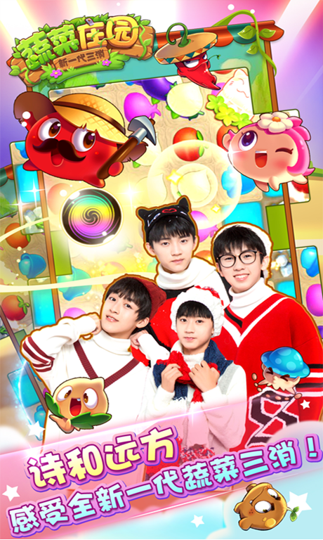 《蔬菜庄园·新一代三消》由跨次元超人气偶像组合易安音乐社倾情代言。可爱灵动的画面,积极乐观的蔬菜形象,由充满活力的易安音乐社代言再合适不过。寒冷的冬天,易安音乐社的少年们灿烂积极的笑容,像阳光一样温暖我们的心,与蔬菜们一起传递正能量。