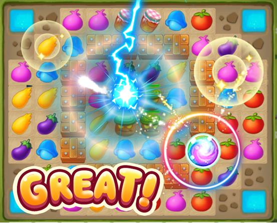 《蔬菜庄园·新一代三消》对传统三消做出了突破式的发展,传统三消玩法加上创意养成的故事线,融合流畅爽快的特效,搞笑灵动的台词音乐,弱化了玩家单纯闯关的枯燥感,增强了游戏的轻松氛围。
