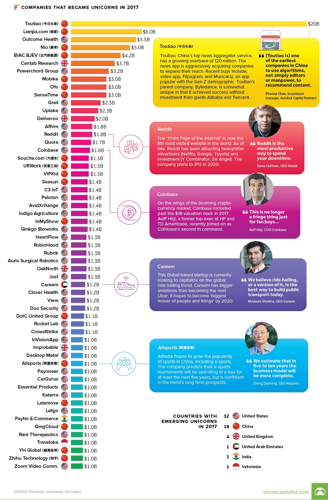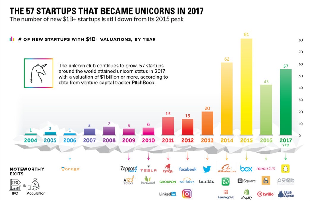 2017全球“独角兽”企业,中国企业占比超三成