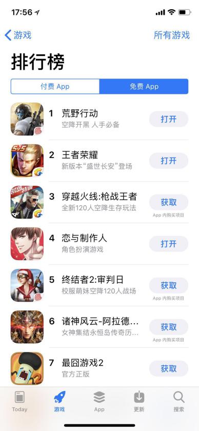 自上线以来,《荒野行动》排名超越《王者荣耀》并从未落后