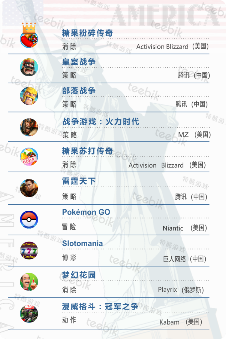 2017美国市场上中国畅销手游TOP10
