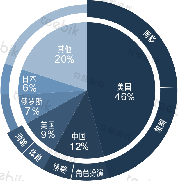 美国游戏市场仍然是本土主打,其次是来自中国、英国等国家的游戏。