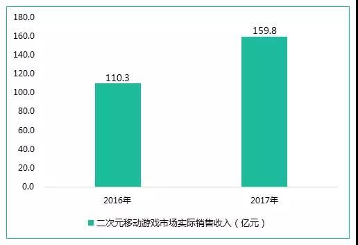 近日,中国音数协游戏工委(GPC)、伽马数据(CNG)、国际数据公司(IDC)近日联合发布《2017年中国游戏产业报告》,报告显示,2017年,中国二次元移动游戏市场实际销售收入达159.8亿元人民币,同比增长45%。2016年上线的《阴阳师》《崩坏3》等产品表现稳定,2017年新上线的《神无月》等产品营收快速增长,从而提升了二次元产品在游戏市场的表现,使二次元游戏市场成为了移动游戏市场重要的细分领域。