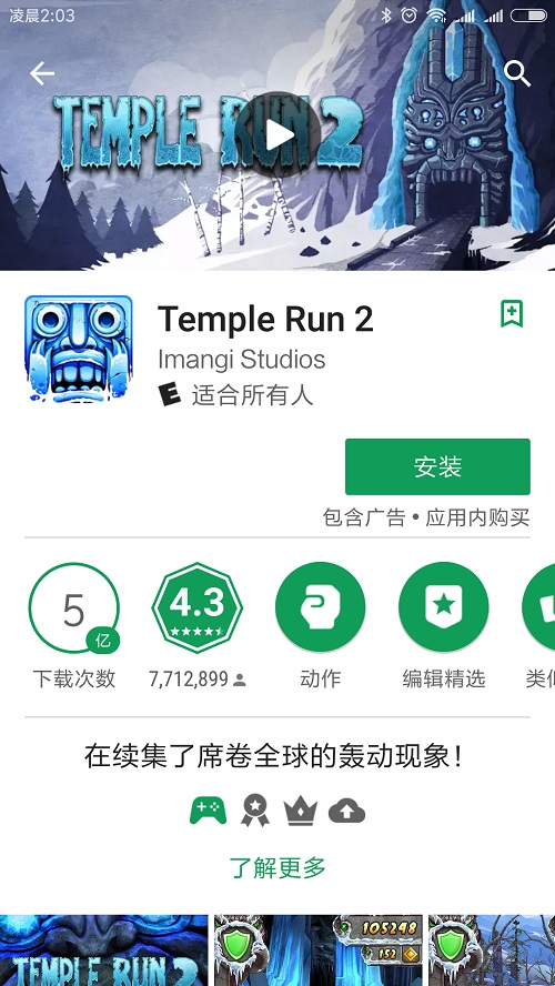 回首《神庙逃亡2》的发展历程,面对如此大的用户群体,我们不得不感叹,由最初的大约100的用户群到现在的5亿用户群体,《神庙逃亡2》的发展可谓是节节攀升,按照目前的发展趋势,《神庙逃亡2》的下载量很可能会继续上涨。