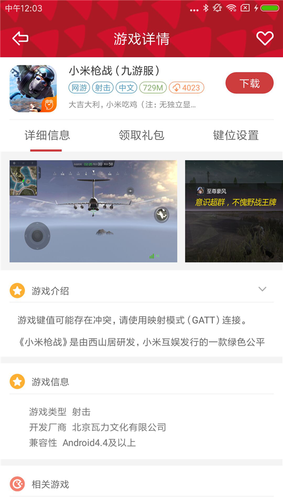 2.在左游游戏厅下载安装《小米枪战》安卓版: