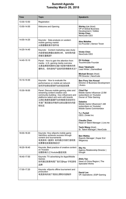 为了更好的为出海企业解决这些营销痛点,北美出海第一整合营销平台NewCode在3月20日GDC峰会期间,将整合北美全产业链顶级资源,配合自身多年的海外营销经验,为国内优秀的相关出海企业打造最专业的北美市场营销峰会。届时,如何评估移动平台的营销效果?欧美用户有什么样的市场变化?如果在欧美组合各种营销方式?媒体、网红、平台怎么看产品和推荐产品?手游电竞在北美的发展趋势和最佳实践有哪些?如何精准定位出海公司的品牌和产品等备受关注的问题,都会在本次峰会中一一得到解答。