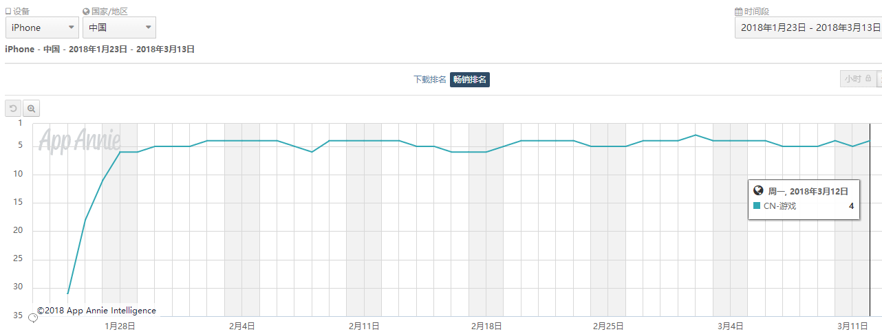 或许网易也没想到旗下王牌《梦幻西游》手游一度会被新一代MMO手游《楚留香》所超越。自1月23日《楚留香》在iOS中国上线之后,其在游戏畅销榜的排名一直呈上升趋势,最高达到TOP3,超过当时的《梦幻西游》手游。目前这款MMO手游几乎已经能够稳定在榜单TOP4左右。