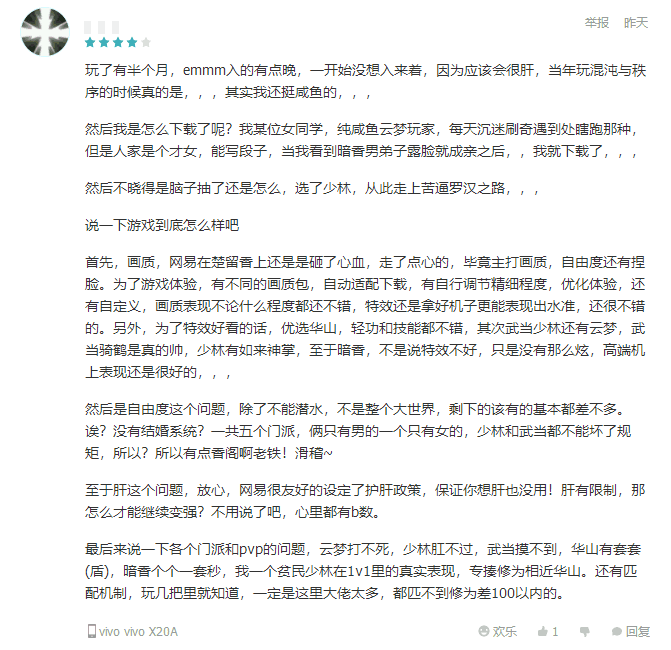 众口难调,一些MMO手游中经常出现的问题,《楚留香》同样正在经历,但是从评论中也可以发现,这款游戏的品质得到了多数玩家的认同,至少在市场上玩家很难找到在画面、玩法上都做到这样极致的MMO手游。