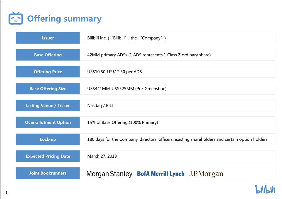 3月19日,B站路演PPT曝光,该公司将于3月27日在美国纳斯达克上市。