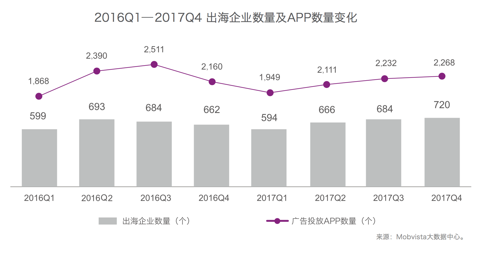 2016Q1—2017Q4出海企业数量及APP数量变化