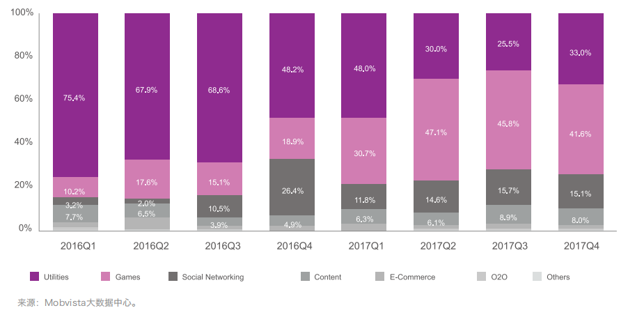 报告同时指出,海外智能机的高渗透率和4G连接数的高速增长,为中国移动出海开发者奠定良好的硬件基础。智能手机出货量的减少,使基础性手机装机应用的新增下载需求减小,而娱乐、休闲功能需求将会随网速的提升而扩大,未来拉动出海互联网市场增长的类别将有所转变,中国出海面临转型。