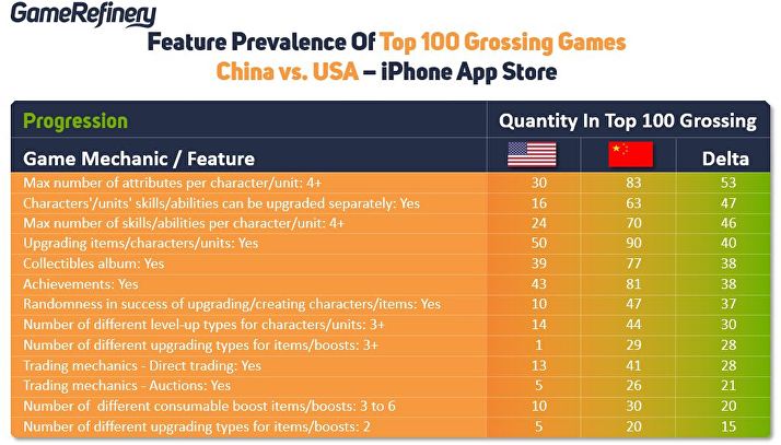 GameRefinery认为中国手游的另一大特点在于其拥有循序渐渐从成长系统,从不会给玩家过多压力。