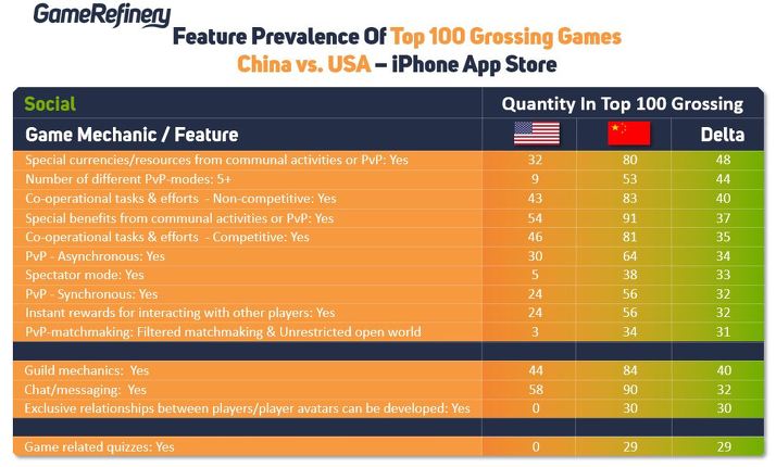GameRefinery认为,中国手游的头部产品融合了深刻社交理念,这点是西方手游所欠缺的。