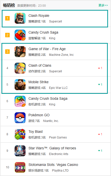 SLG产品失去垄断地位,整体跌出美国App Store畅销榜TOP10