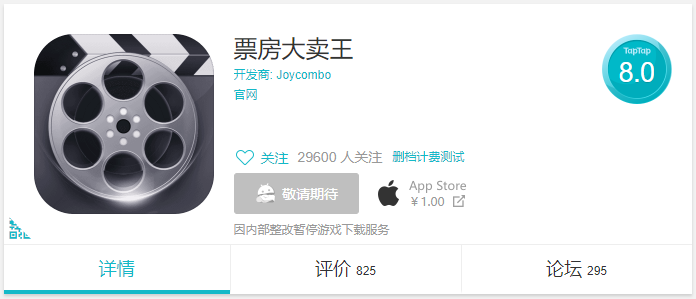 上文提到《票房大卖王》在TapTap获得了7.9分,除此以外,其实它在App Store的评分也很不错: