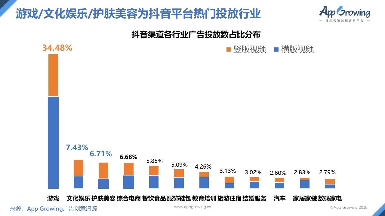 2)游戏/文化娱乐/护肤美容为抖音渠道热门投放行业