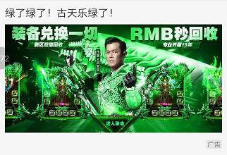 一句“绿了绿了!古天乐绿了!”的广告语配上满屏闪瞎眼的绿色,贪玩制作的这一广告仍然令人记忆犹新。去年4月份“古天乐绿了”开始在社交平台掀起广泛讨论,大众有对于古天乐代言看起来非常不高大上广告的不解,也有人以此为乐并进行自发传播,但无论如何这一广告成功为《贪玩蓝月》带来了更高的关注度。