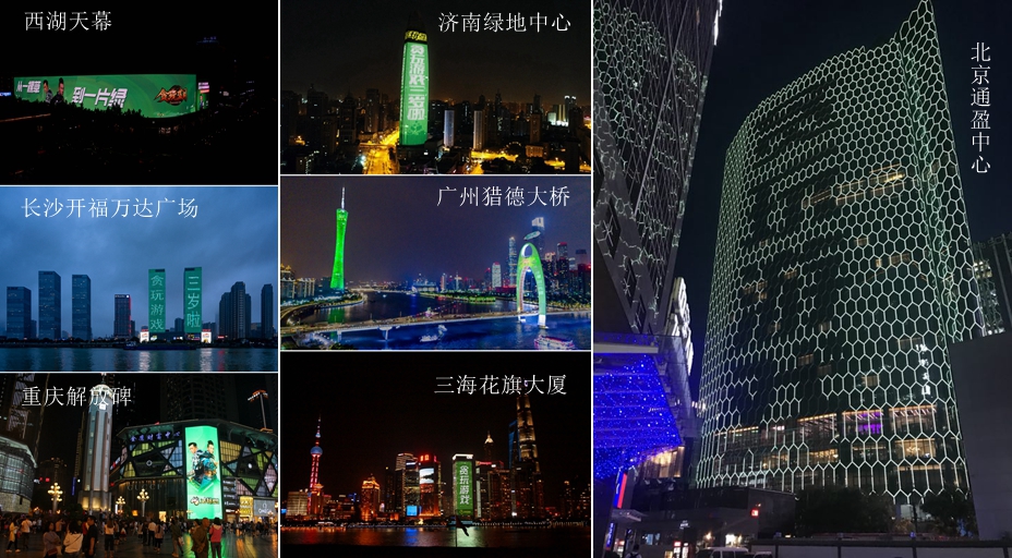 除了点亮全国各地的地标,大范围地推广告之外,贪玩这次还上天了。