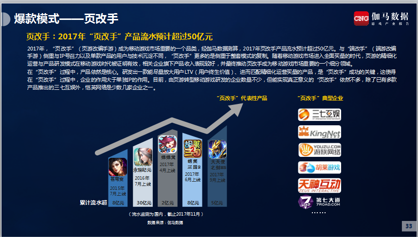 2016年《永恒纪元》上线10个月总流水超过21亿的成绩,让大众看到了“页转手”的潜力。在此之后,市场上涌现出一大批“页转手”产品,凭借其快速迭代的外观特色和玩法、成熟的数值和成长系统,拿下了页游时代延续下来的那一批特定玩家群。
