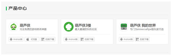 首先需要说明的是,侠聚网络的三款App产品在内容上区别不大。其中“葫芦侠”和“葫芦侠3楼”仅存在是否拥有游戏修改器功能的差别;而“葫芦侠 我的世界”则是专供《Minecraft Pocket Edition》使用的版本,下文统称“葫芦侠”。