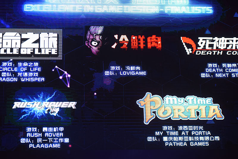 在每个奖项公布前,现场的大屏幕都会播放一段入围的游戏视频介绍,并在介绍结束后打上所有入围作品的标题。看得不仅台下的玩家们吊足了胃口,更是让入围的游戏开发者们在台下忐忑不安。
