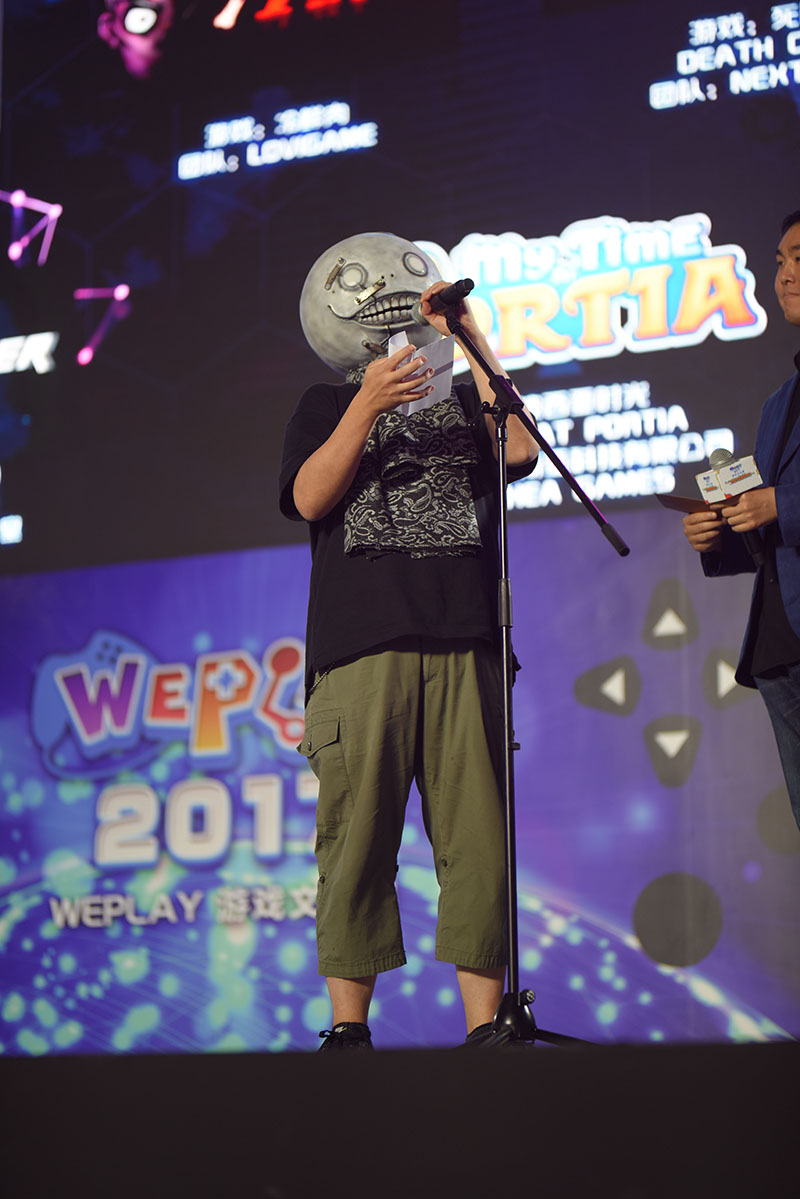 WePlay现场的大牌嘉宾们在台上公布indiePlay最终的奖项归属,也给了中国的游戏开发者们与这些知名的海外游戏开发者们来了一次亲密接触交流的机会。现场的颁奖嘉宾可谓是星光璀璨,而从这些知名嘉宾手里接过沉甸甸的奖杯,相信国内的这些制作人感受到的不仅是欣喜,同时也是一份想要制作出更优秀的游戏的压力与动力。上图为《尼尔:机械纪元》的监督横尾太郎在台上认真的宣读获奖名单。