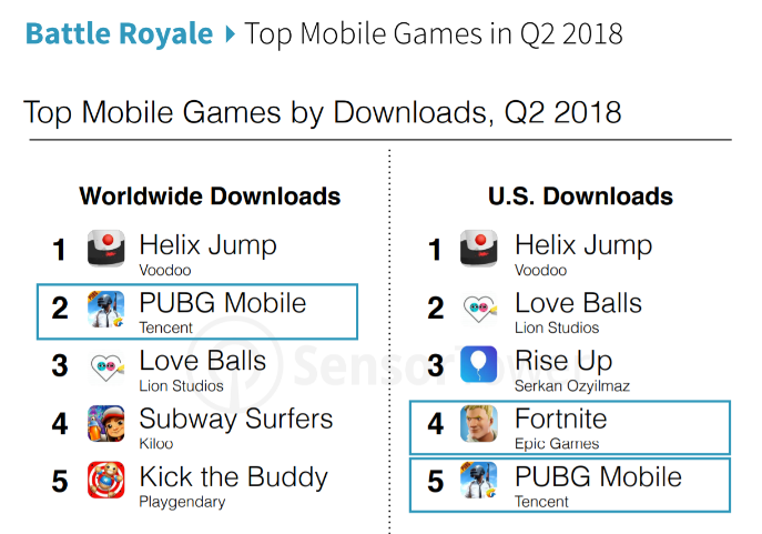 2018Q2美国游戏下载榜:两款“大逃杀”表现强劲